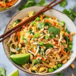 Use extra-firm tofu for best texture, and sauté until golden.Omit eggs and ensure all ingredients are vegan-friendly for a fully vegan version.For nut-free, use sunflower seeds or omit toppings entirely.Prep all ingredients before cooking—Pad Thai comes together quickly in the pan.
