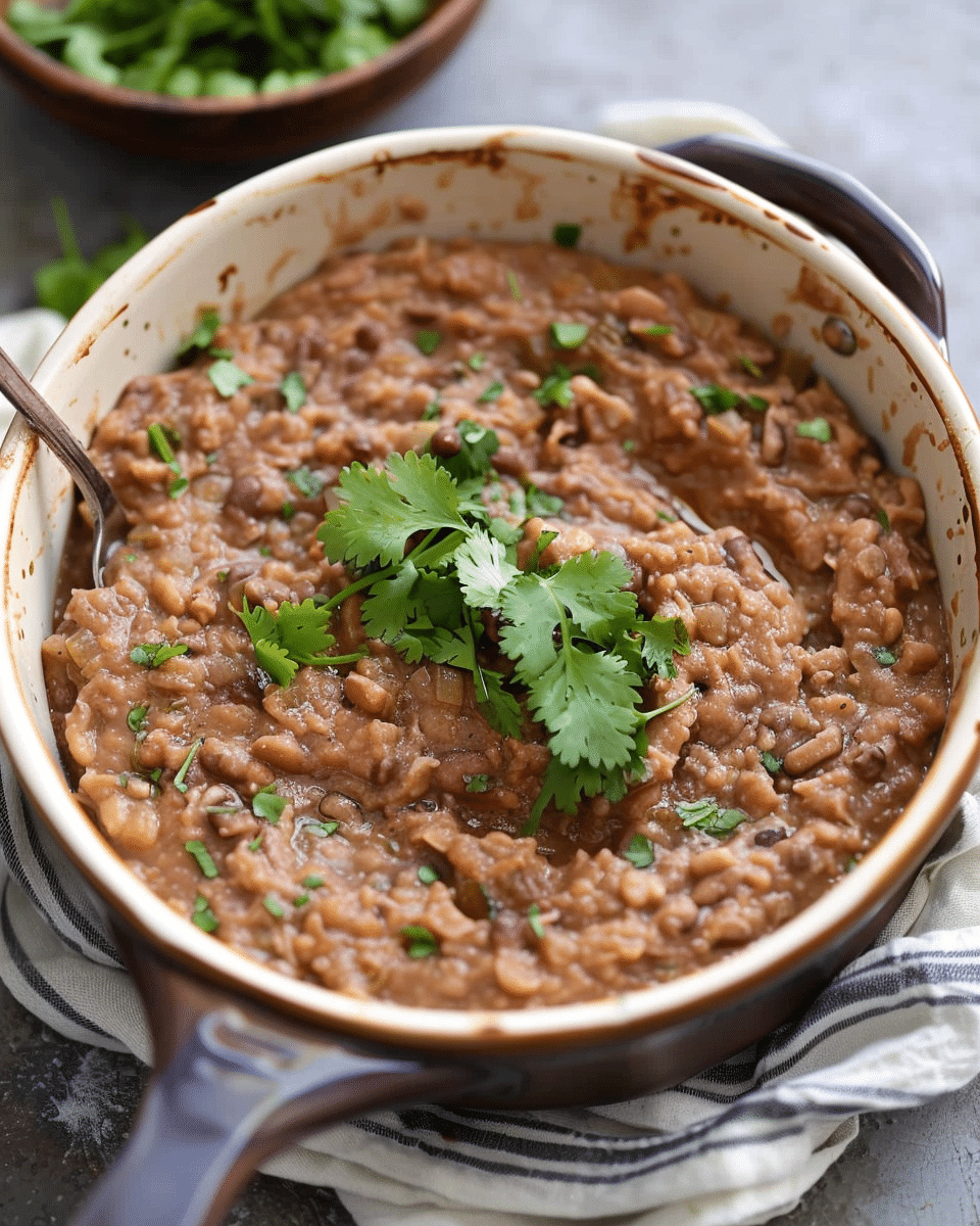 Vegetarian refried beans are a creamy, savory, and protein-packed dish made with mashed pinto or black beans, sautéed onions, garlic, and spices—without the lard. Perfect as a side, taco filling, or hearty dip.