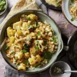 Vegetarian Tagine with Roasted Cauliflower is a hearty North African–inspired dish made with spiced vegetables, chickpeas, and dried fruit in a fragrant tomato-based sauce. Roasted cauliflower adds depth and nuttiness, making this plant-based meal both comforting and satisfying.
