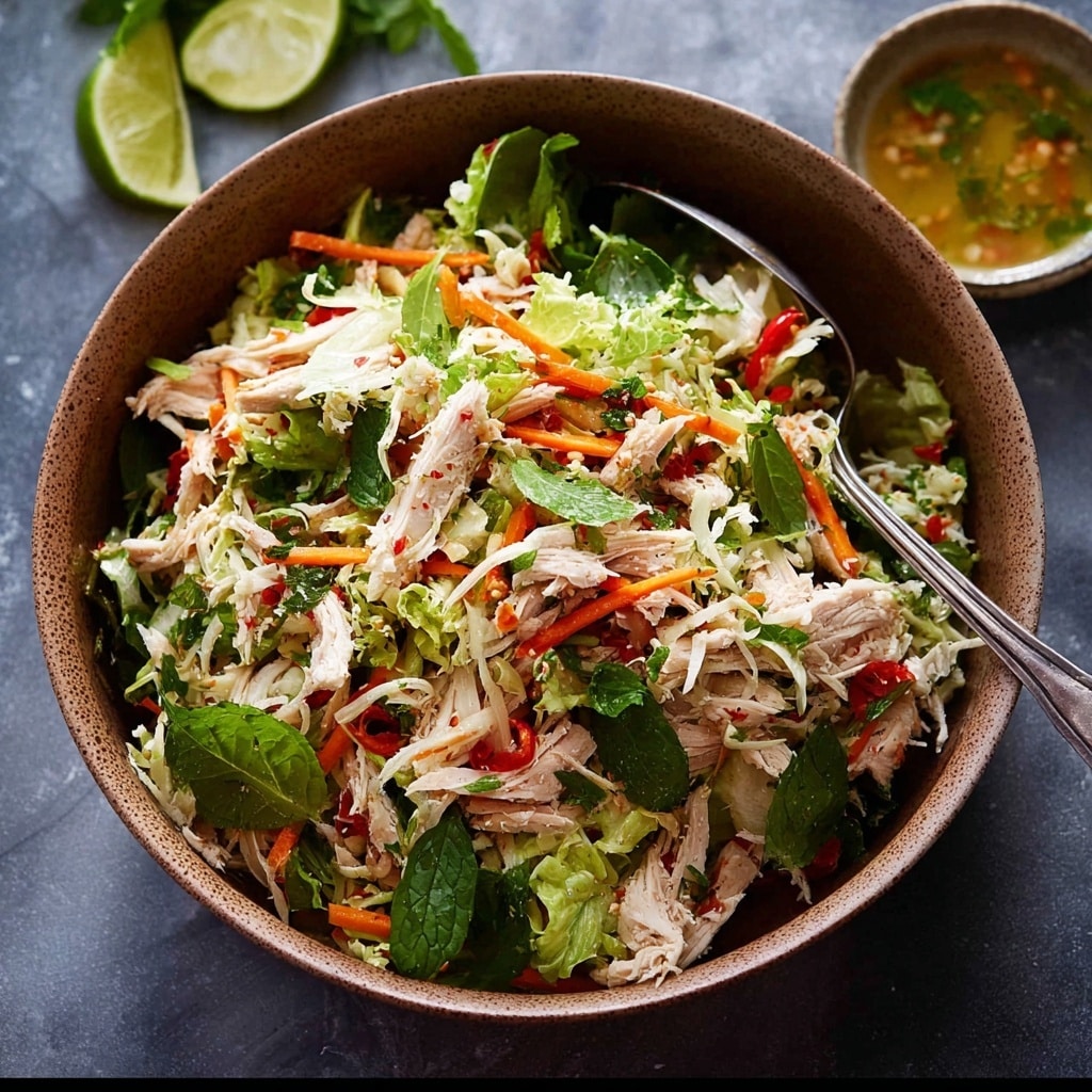 Use rotisserie chicken or poached chicken breast for convenience.Keep dressing and peanuts separate if making ahead to maintain freshness and crunch.To make vegetarian, replace chicken with tofu and fish sauce with soy sauce or vegan fish sauce.Add sliced cucumbers or green apples for extra crunch and freshness.Great served on its own or over rice noodles for a heartier meal.