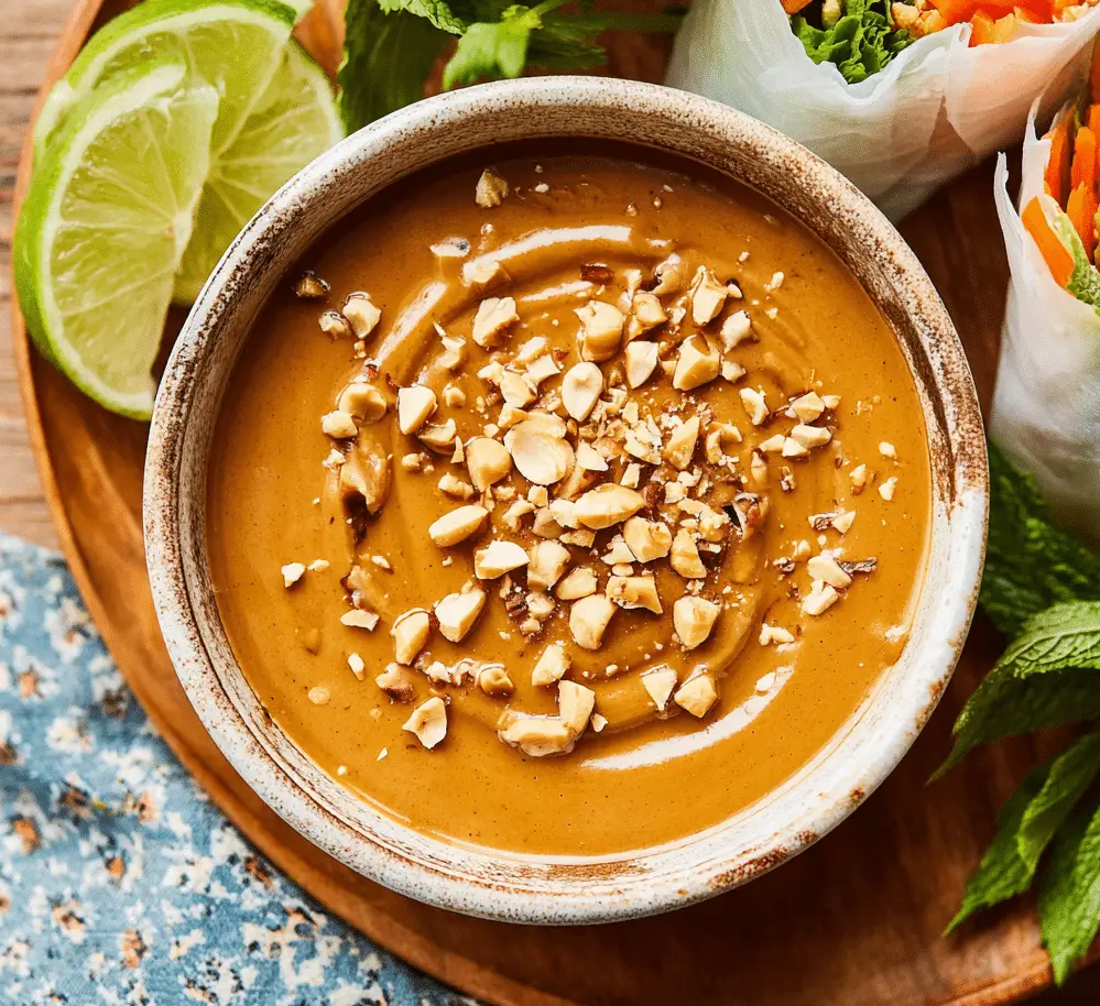 Vietnamese peanut sauce is a creamy, savory-sweet condiment made with peanut butter, hoisin, and garlic. It’s smooth, flavorful, and perfect for dipping fresh spring rolls or drizzling over noodles and grilled dishes.