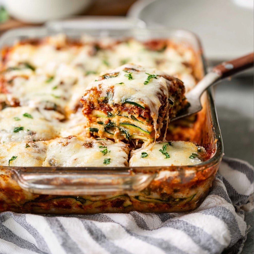 Salt and pat dry zucchini slices to reduce moisture and avoid a watery lasagna.Use freshly shredded cheese for best melting texture, but pre-shredded also works.Assemble the lasagna a day in advance and refrigerate before baking.Swap ricotta with cottage cheese for a lighter option.Make it vegetarian by omitting meat and adding extra vegetables.