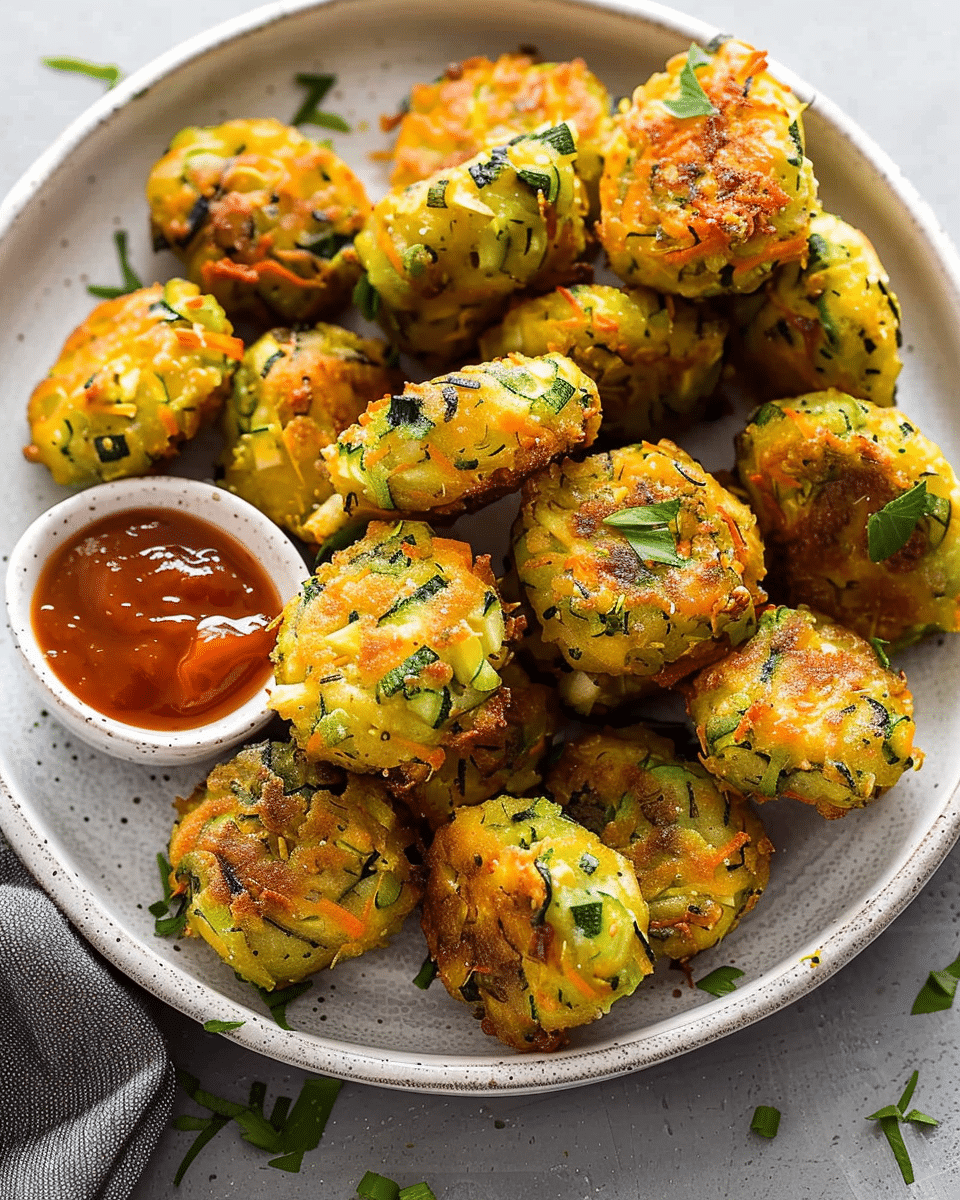 Zucchini Tots are crispy, cheesy, veggie-packed bites made with shredded zucchini, cheese, and breadcrumbs. Baked until golden, they’re a nutritious and delicious alternative to traditional tater tots—perfect for snacking or as a side dish.
